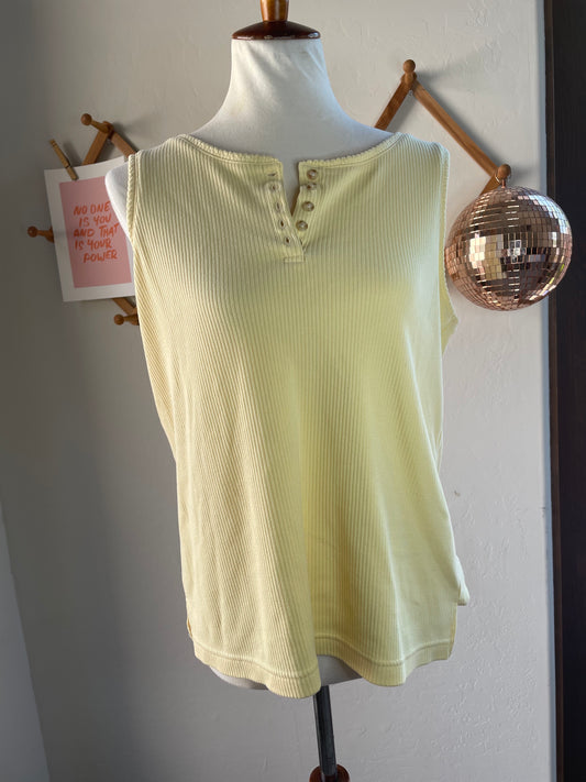 Vintage Yellow Button Up Tank Top (L)