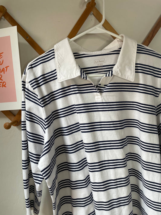 L.L. Bean Navy & White Stripe Long Sleeve (XL)