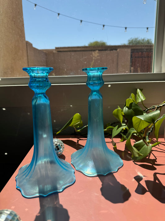 Vintage PartyLite Radiant Glow Green Stemmed Candle Holders
