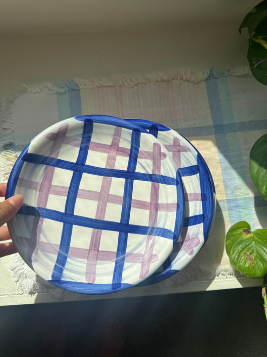 Gibson Purple & Blue Basket Weave Plates, Set of 6