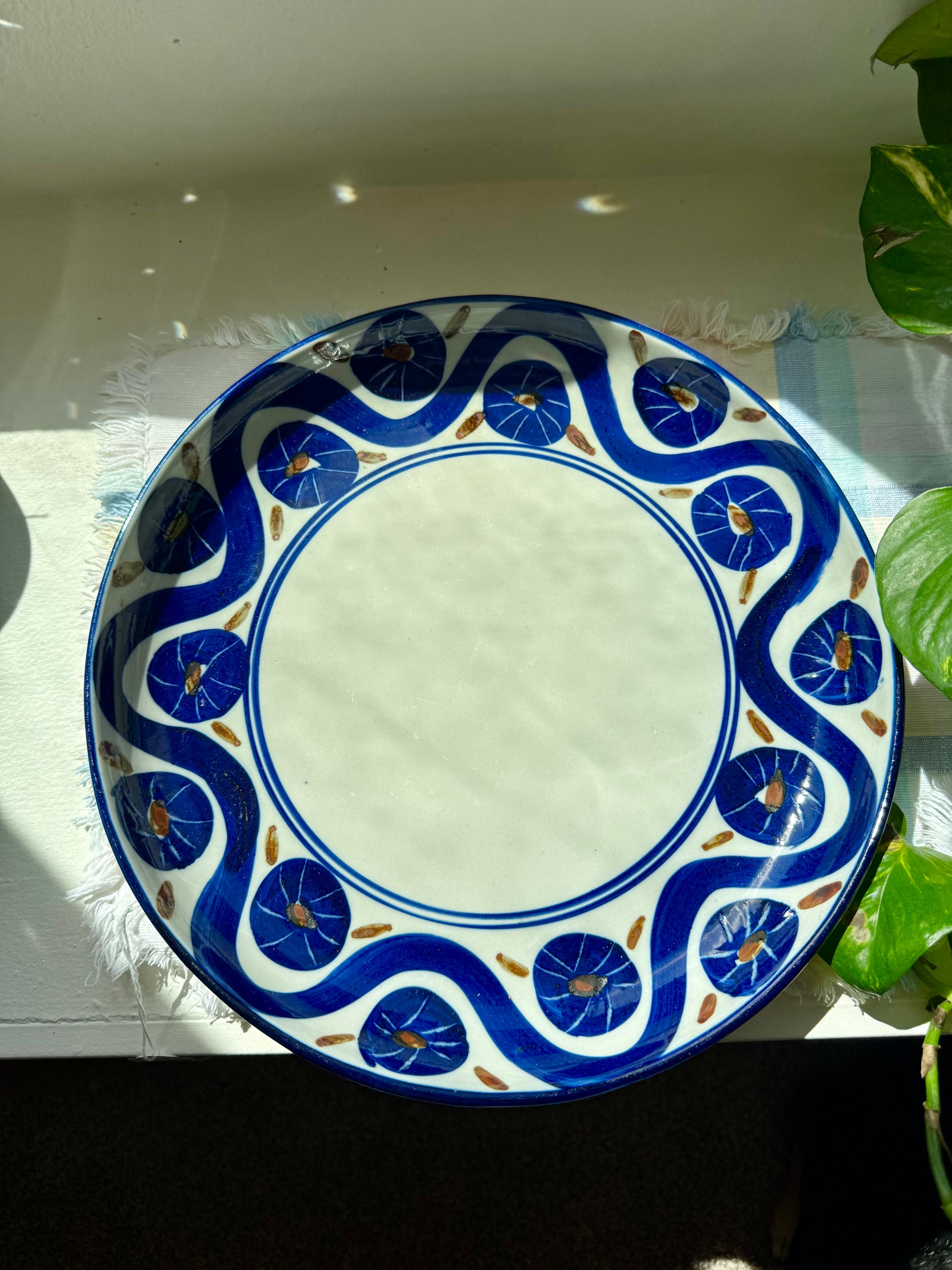 If you love a funky piece for serving or displaying items, then this piece is for you! Can be used to serve that dish you're taking to Dancing with the Stars night with your friends or could be used on a coffee table to center some of your decor. Platter is 13" in diameter.